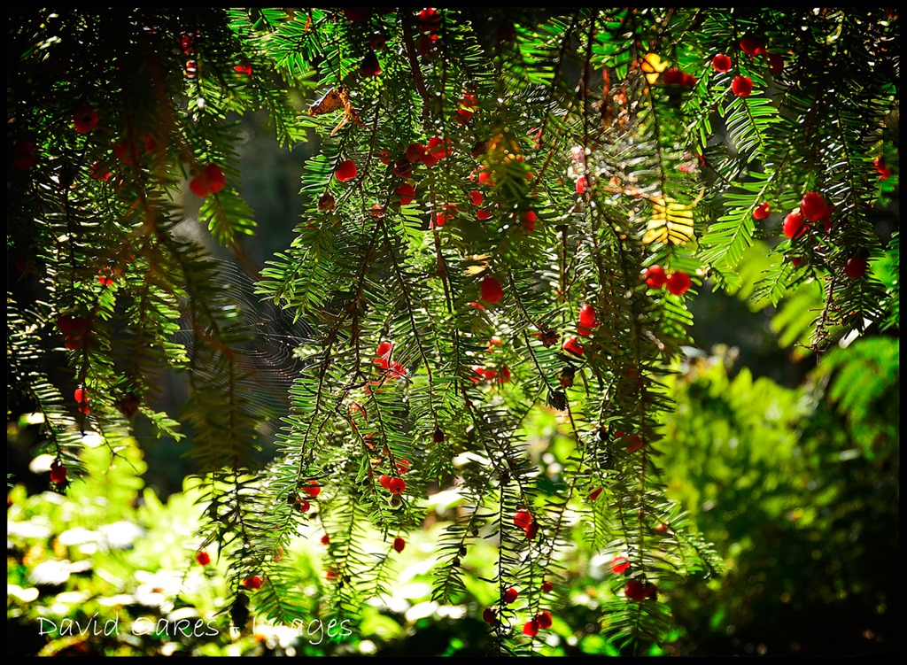 The Yew tree is now producing its annual crop of berries. Wax like in appearance they glisten just a little like miniature Christmas baubles…….
