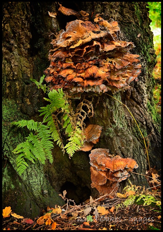 Underneath this Oak a Bracket Fungi is thriving in the damp conditions….