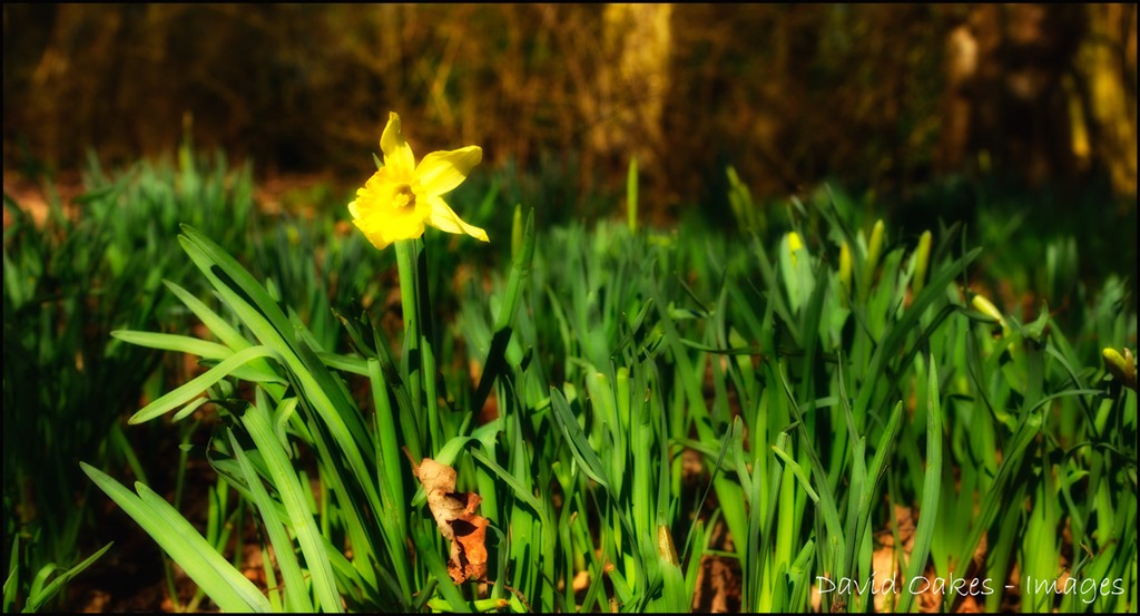 Daffodils are next on the menu to delight us. Unlike the sheltered garden Daffodils which are now bunched together brashly brandishing their trumpets, in the woods they are still very much ‘in the green’ with only the occasional yellow signal of the feast to come….