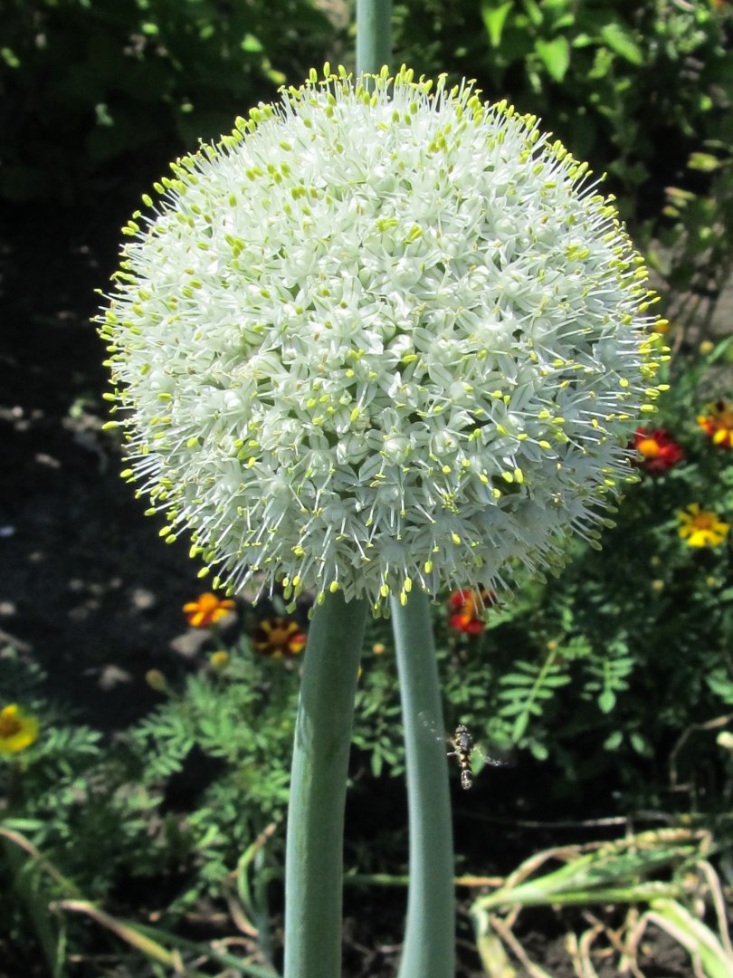 The delicate flowers of the chives matches beautifully with the exuberantly onion flowers.http://1.bp.blogspot.com/_A_YdlYr3J64/TEL7LBEEOUI/AAAAAAAAASs/SeYv1Rdcpso/s1600/uienbol.jpg