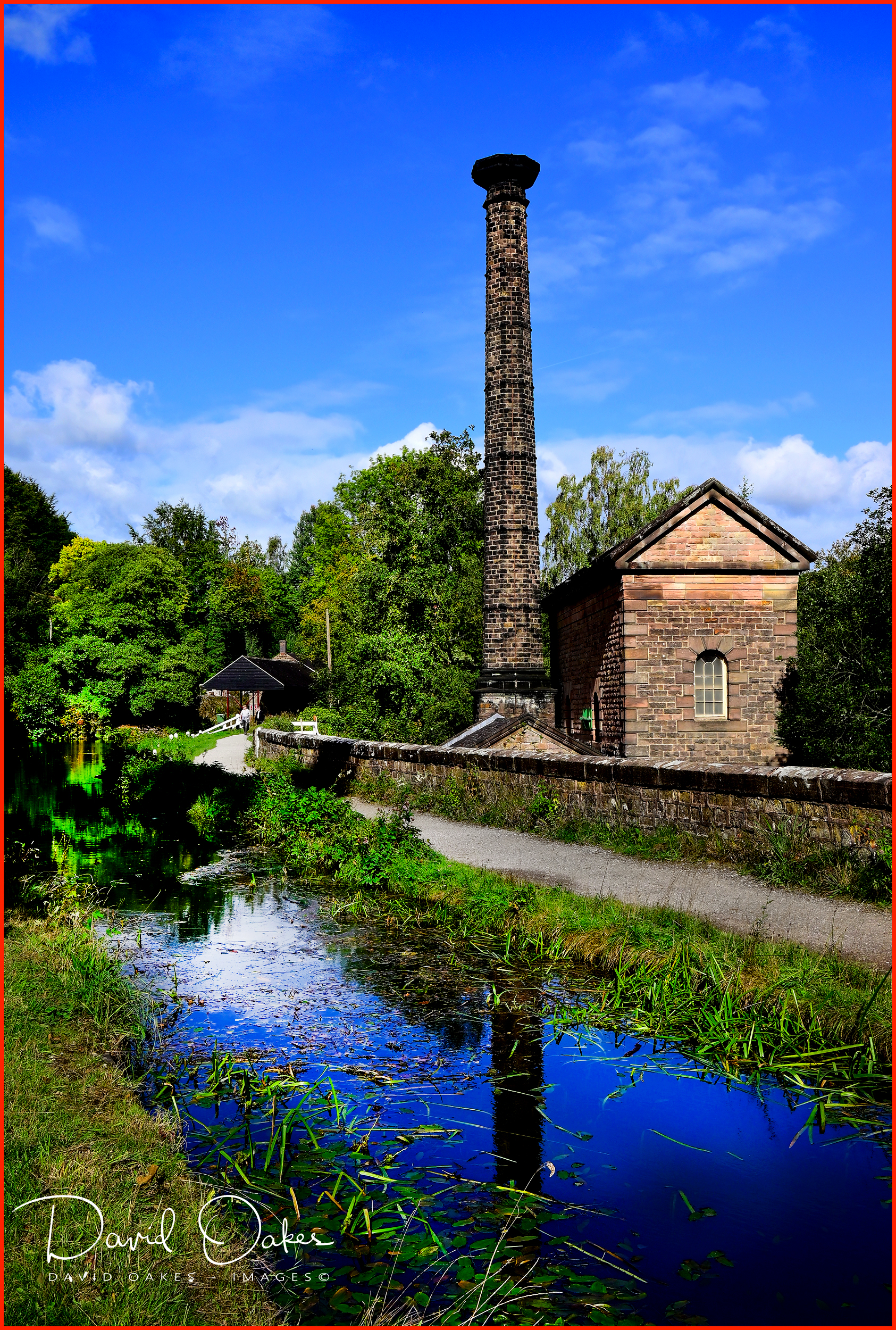 Walk a short distance further and you would be surprised to see a tall stone chimney reach high above the woods.   This is Lea Woods Pumping House…