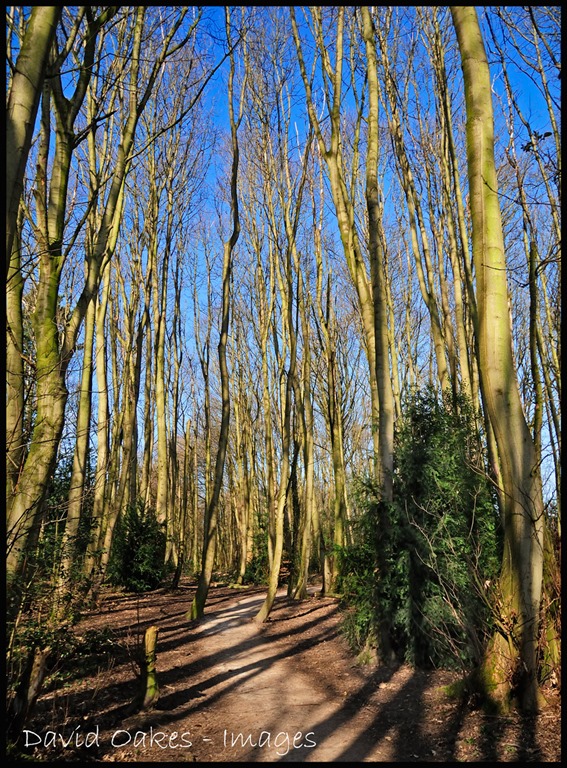 Another bright start to the morning and despite the fact that the sun is now climbing higher in the skies the shadows in the woods are still long… like creeping tentacles. But taking a look into the tree tops you can now sense that the buds are swelling and leaves will soon burst leaving this woodland glade in a different kind of shadow…from light and airy to dark and mysterious, probably within two weeks. That is of course subject to our spring not reverting to winter!