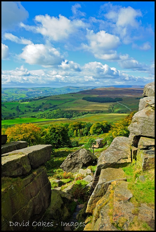 Looking down from Stanage Edge, a gritstone cliff above the Hope Valley, the countryside gives the impression of still being a ‘green and pleasant’ land. Look closely and you get just a flash of autumnal colour….yes, a ‘hint of a tint’. It is still a cold but sunny day, maybe the cloud build up is an indication of change to come……