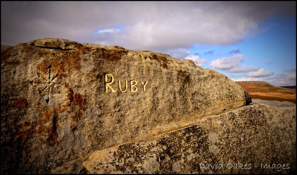 Not sure who Ruby is but she must have made a very big impression on someone to head out onto the high moors of Derbyshire. Here, on one of the many Millstone Grit outcrops, they have left a permanent tribute to her. She must be (or has been) pretty special!